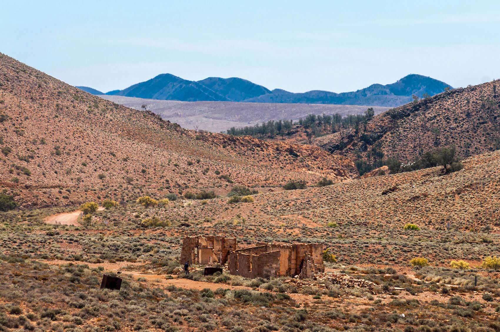 FLINDERS RANGES Aroona road, old hotel ruins.